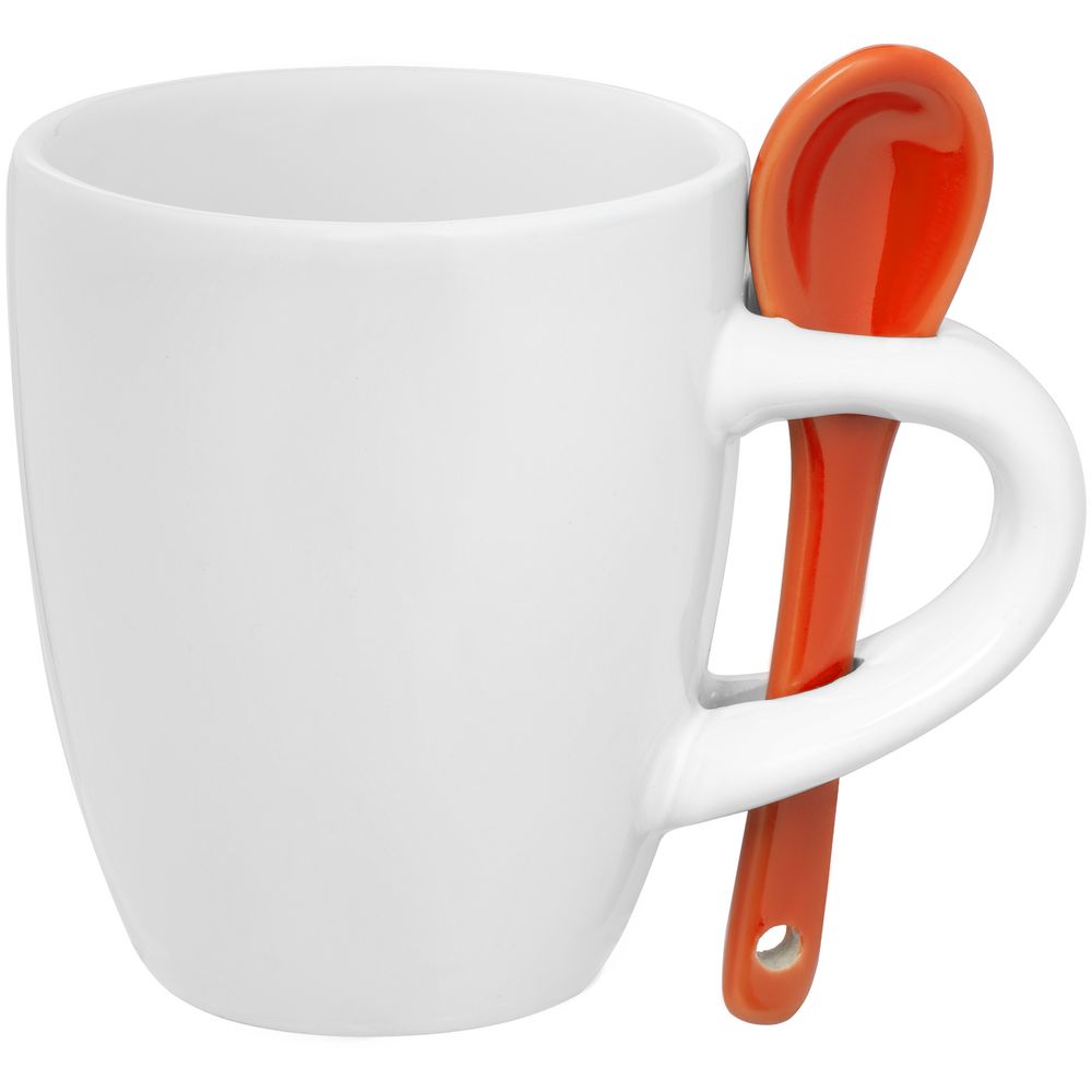 Кофейная кружка Pairy с ложкой, белая с оранжевой