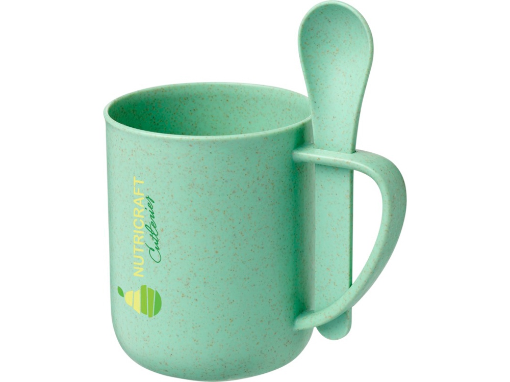 Чашка 420 мл с ложкой Rye из пшеничной соломы. Одностенная чашка с ложкой состоит на 50 % из пшеничного соломенного волокна и на 50 % — из ПП-пластика. Объем — 420 мл. Тампопечать (1 цвет (цветные изделия)) на данный товар осуществляется бесплатно. Оплачивается только настройка оборудования в размере 3600 рублей на весь тираж.