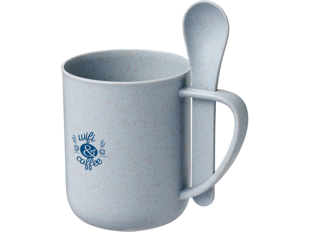 Чашка 420 мл с ложкой Rye из пшеничной соломы. Одностенная чашка с ложкой состоит на 50 % из пшеничного соломенного волокна и на 50 % — из ПП-пластика. Объем — 420 мл. Тампопечать (1 цвет (цветные изделия)) на данный товар осуществляется бесплатно. Оплачивается только настройка оборудования в размере 3600 рублей на весь тираж.