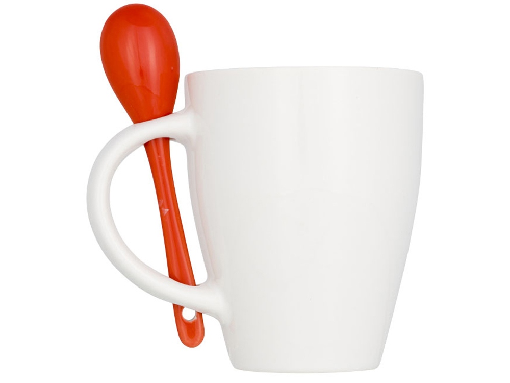 Чашка Nadu с ложкой. Керамическая кружка с модным дизайном и присоединенным держателем для ложки в ручке. Внутренняя часть кружки окрашена тем же цветом, что и ложка. Соответствует требованиям EN12875-1; подходит для мытья в посудомоечной машине даже после украшения. Объем — 250 мл. Представлена в белой картонной коробке. Керамика.
