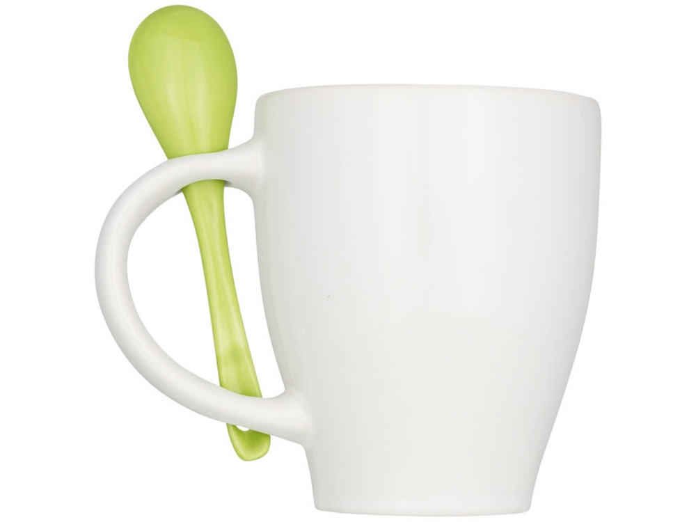 Чашка Nadu с ложкой. Керамическая кружка с модным дизайном и присоединенным держателем для ложки в ручке. Внутренняя часть кружки окрашена тем же цветом, что и ложка. Соответствует требованиям EN12875-1; подходит для мытья в посудомоечной машине даже после украшения. Объем — 250 мл. Представлена в белой картонной коробке. Керамика.