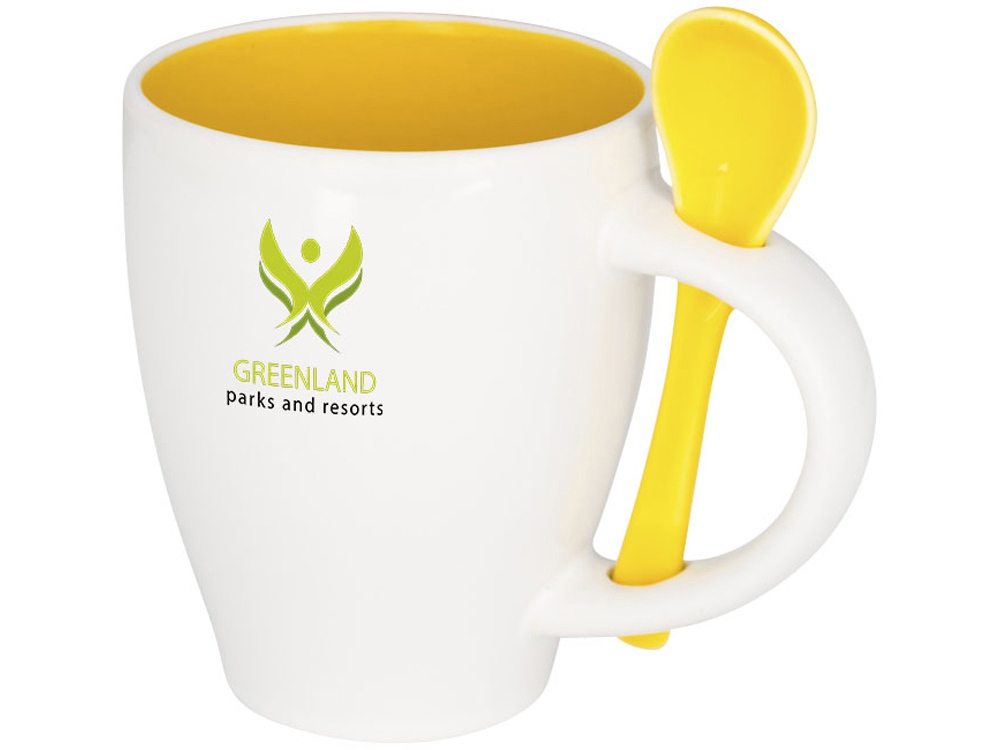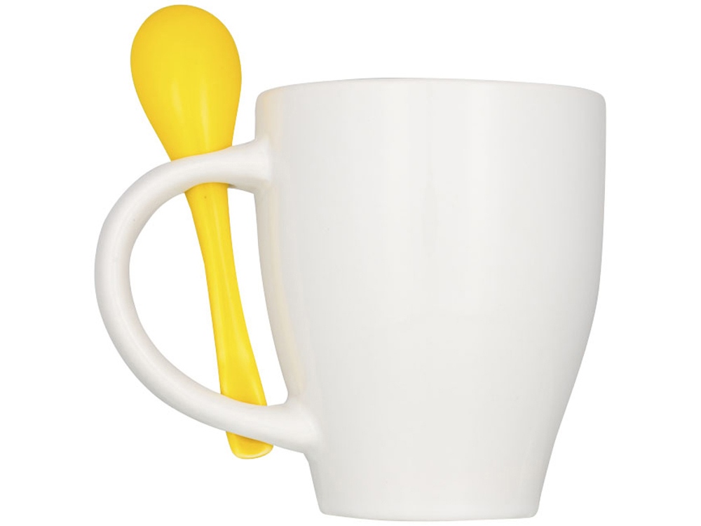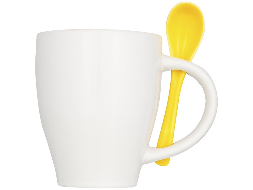 Чашка Nadu с ложкой. Керамическая кружка с модным дизайном и присоединенным держателем для ложки в ручке. Внутренняя часть кружки окрашена тем же цветом, что и ложка. Соответствует требованиям EN12875-1; подходит для мытья в посудомоечной машине даже после украшения. Объем — 250 мл. Представлена в белой картонной коробке. Керамика.