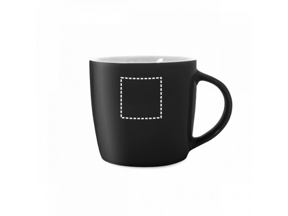 Керамическая кружка с емкостью до 370 мл, которая поставляется в коробке. Вид нанесения, рекомендуемый поставщиком: тампопечать, низкотемпературный обжиг, высокотемпературный обжиг