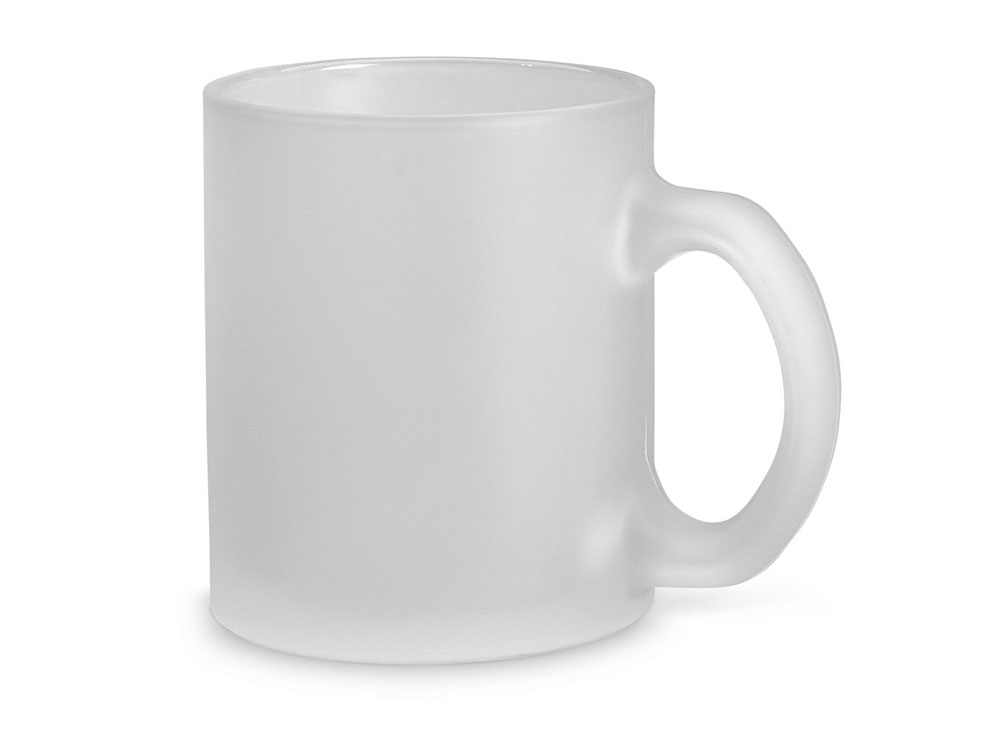 Кружка из матового стекла объемом 340 мл. Вид нанесения, рекомендуемый поставщиком: тампопечать, трафаретная печать, низкотемпературный обжиг