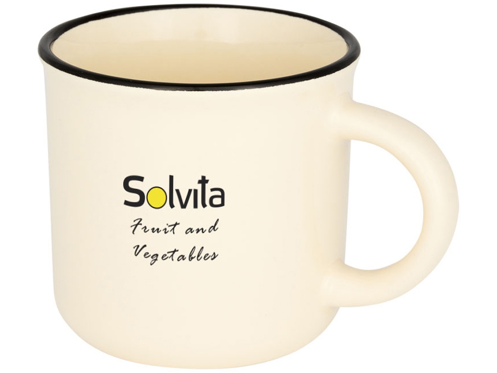 Керамическая походная кружка. Винтажная керамическая кружка. Объем — 310 мл. Соответствует требованиям EN12875-1; подходит для мытья в посудомоечной машине даже после украшения. Представлена в белой картонной коробке. Керамика. Тампопечать (1 цвет (цветные изделия)) на данный товар осуществляется бесплатно. Оплачивается только настройка оборудования в размере 3600 рублей на весь тираж.