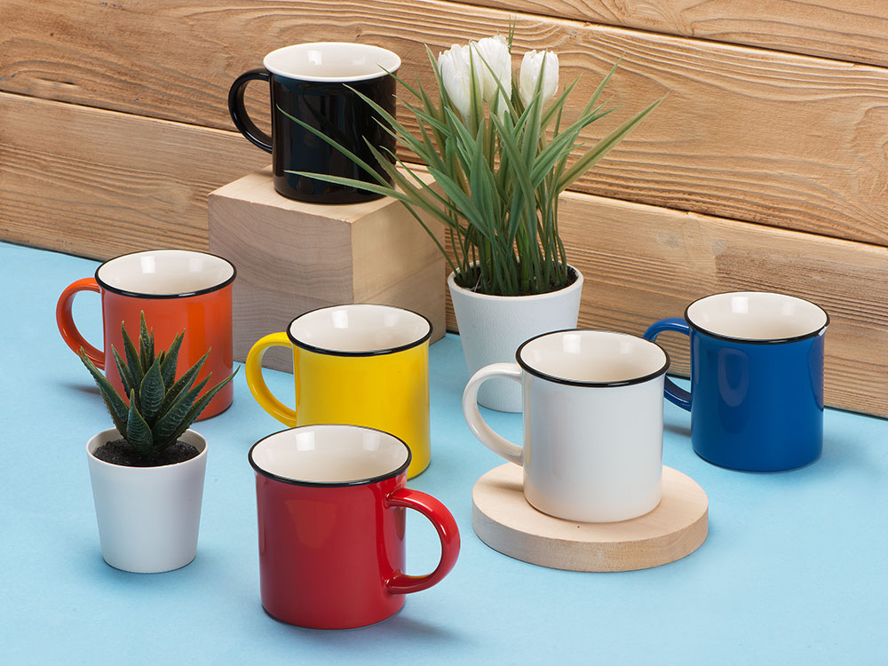—Кружка Countryside с черным ободком, белая внутри, цветная снаружи, оранжевый