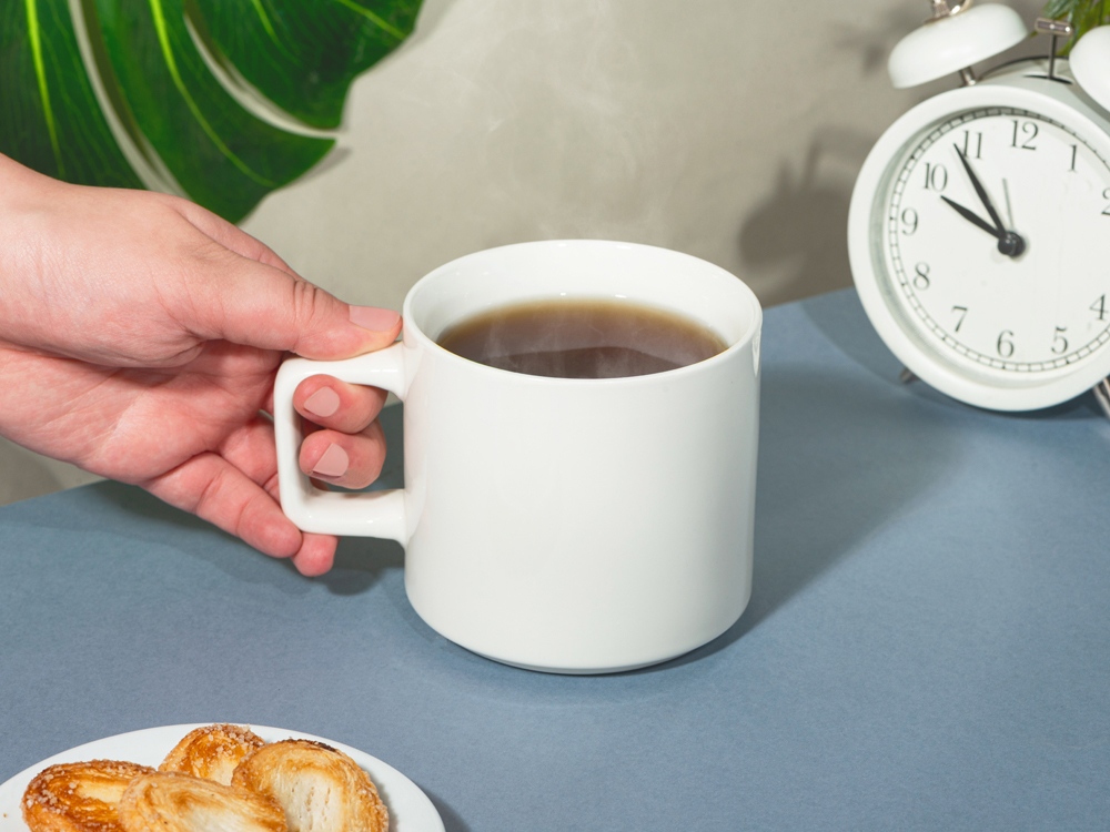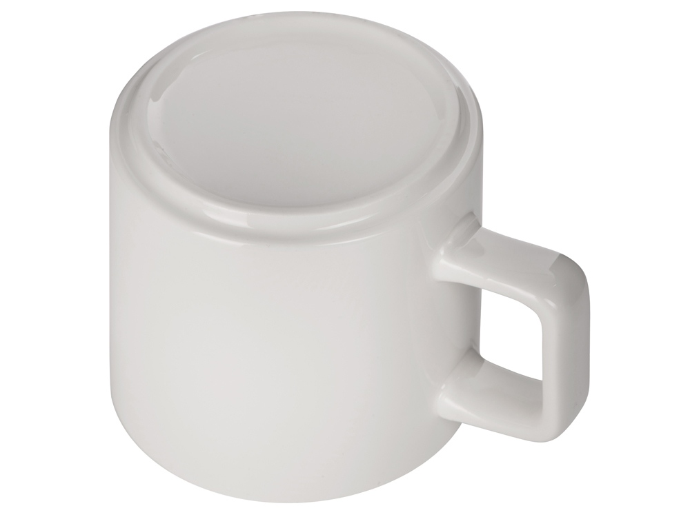 Белая кружка из костяного фарфора с удобной квадратной ручкой — широкой, комфортной для хвата и необычной формы. Форма дна позволяет ставить кружки друг на друга для экономии места: зацепленные друг за друга, выступом донышка, они не соскользнут друг с друга, выстроенные в ровную башню.