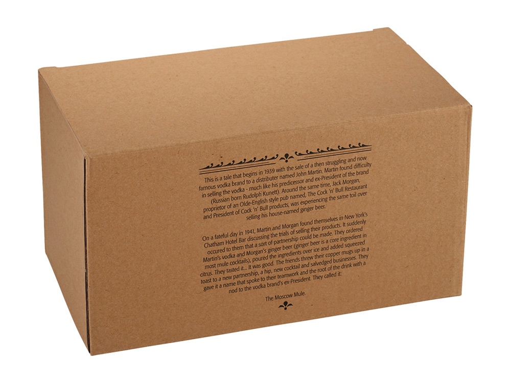 Набор коктейльных кружек Moscow Mule послужит идеальным подарком для любителя коктейльных историй. Набор включает в себя 2 алюминиевые кружки с медным покрытием, историю коктейля и карточку с рецептом. Гравировка (оптоволоконный лазер) (Без чернения) на данный товар осуществляется бесплатно. Оплачивается только настройка оборудования в размере 1000 рублей на весь тираж.