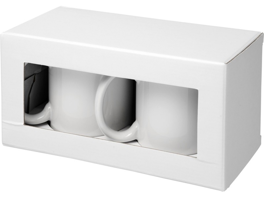 Набор из двух керамических кружек объемом 330 мл. Упакован в белой коробке с окошком. Керамика.
