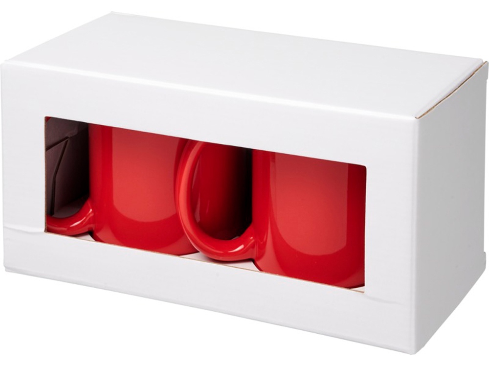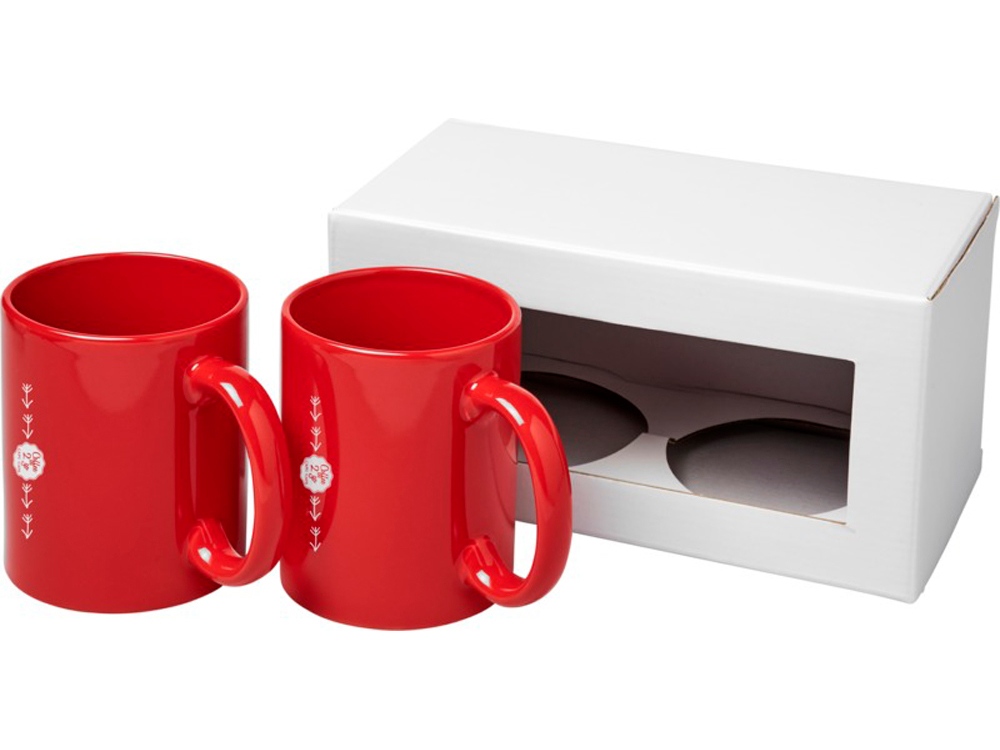 Набор из двух керамических кружек объемом 330 мл. Упакован в белой коробке с окошком. Керамика.