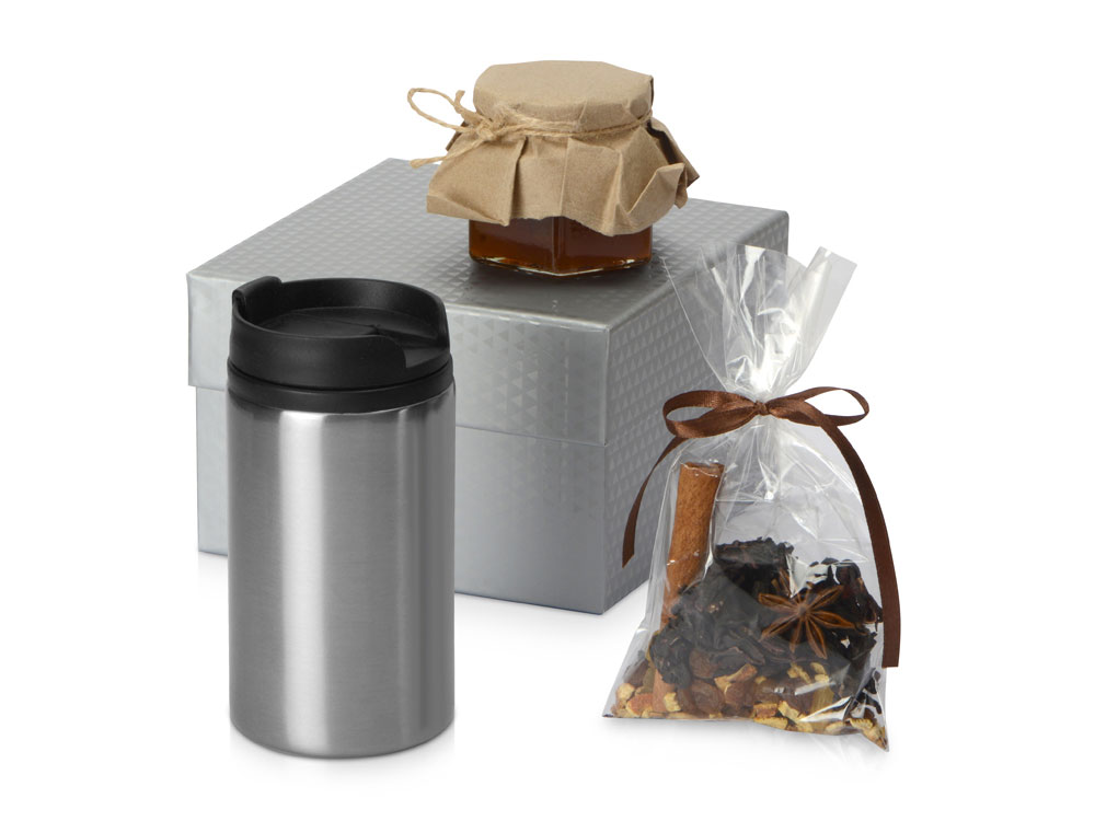 Подарочный набор Глинтвейн – прекрасный зимний подарок и знак внимания. В набор входят термокружка 250 мл, варенье из облепихи 100 мл, и специи для глинтвейна, упаковано все в подарочную коробку.