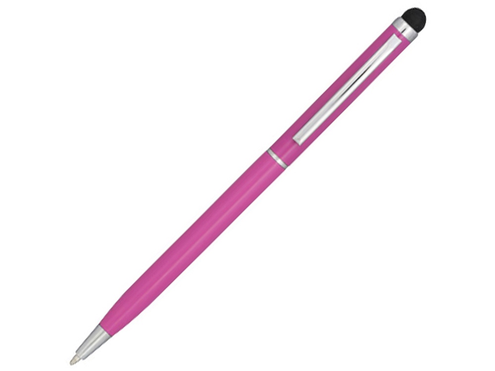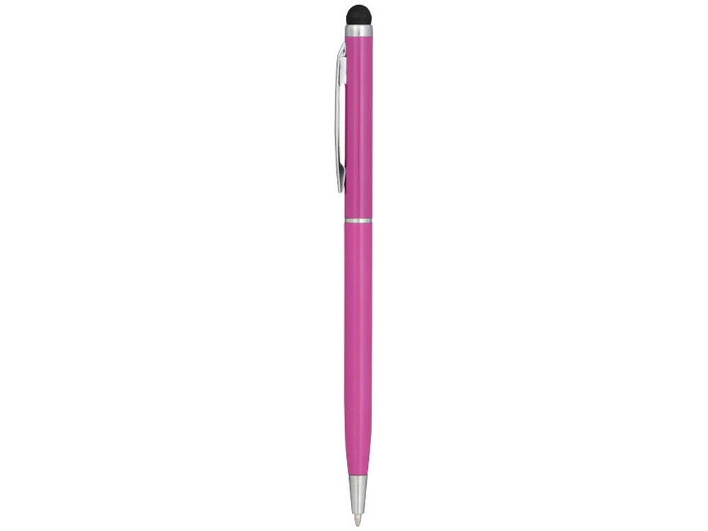 Алюминиевая шариковая ручка Joyce. Тонкая алюминиевая шариковая ручка с поворотным механизмом и стилусом. Алюминиевый корпус с металлическим зажимом и кольцом посередине, остальные элементы из пластика. Гравировка (оптоволоконный лазер) (Без чернения) на данный товар осуществляется бесплатно. Оплачивается только настройка оборудования в размере 950 рублей на весь тираж.