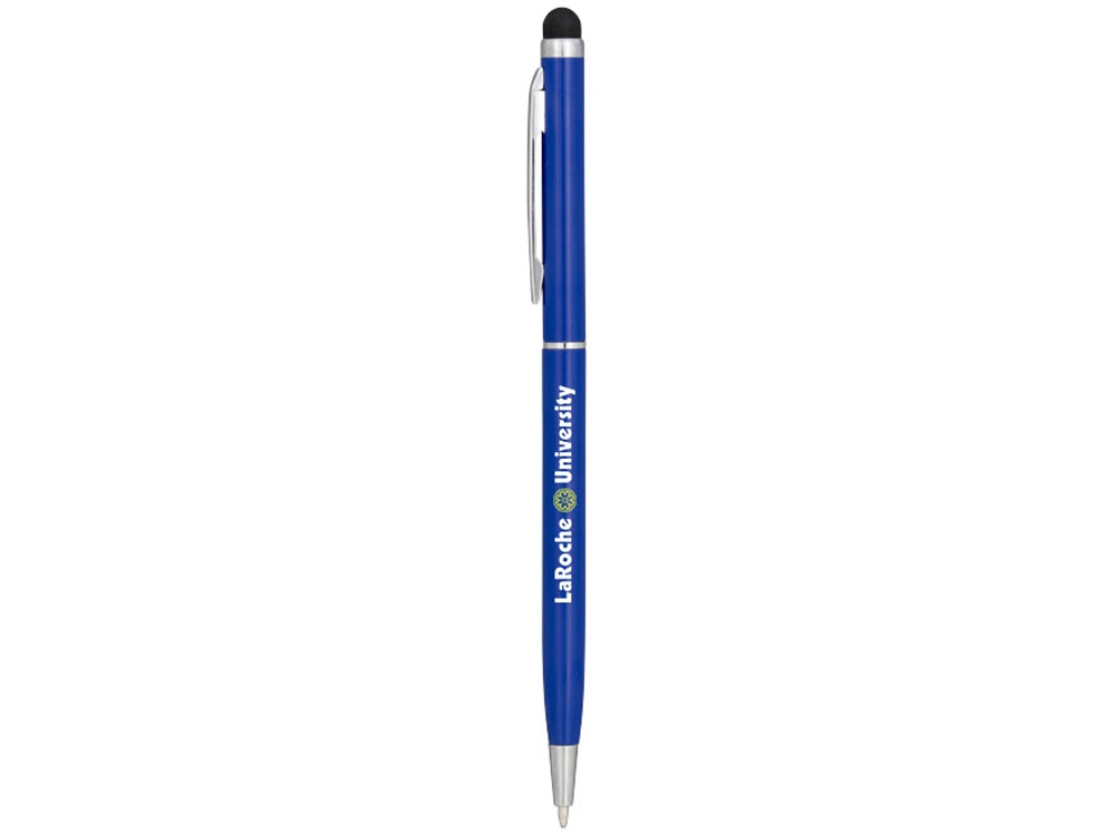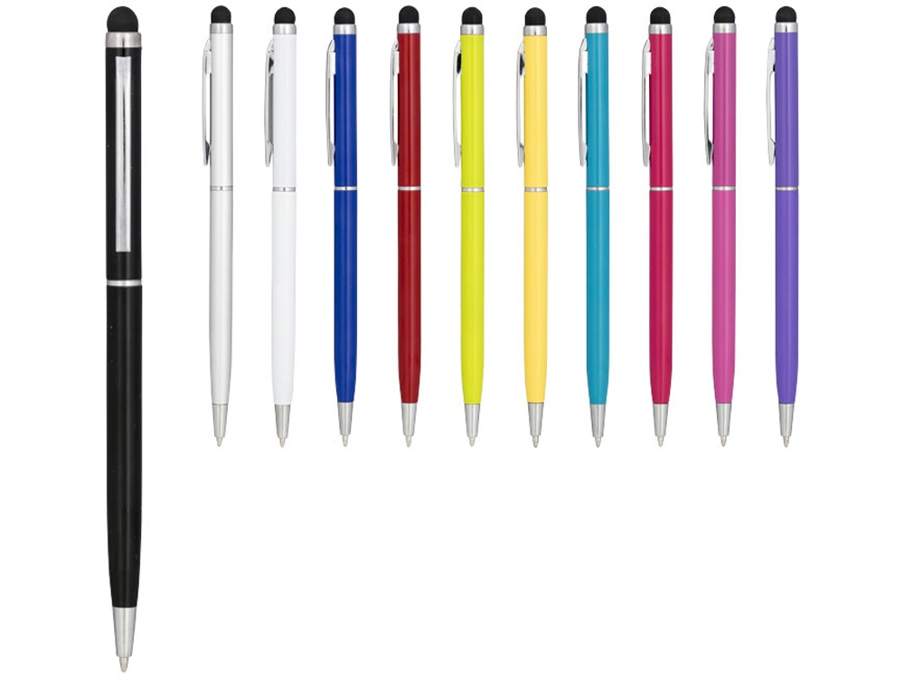 Алюминиевая шариковая ручка Joyce. Тонкая алюминиевая шариковая ручка с поворотным механизмом и стилусом. Алюминиевый корпус с металлическим зажимом и кольцом посередине, остальные элементы из пластика. Гравировка (оптоволоконный лазер) (Без чернения) на данный товар осуществляется бесплатно. Оплачивается только настройка оборудования в размере 950 рублей на весь тираж.