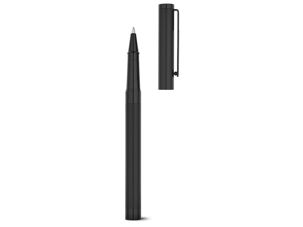 AUTOGRAPH это изысканный набор состоящий из шариковой ручки и роллера. Роллер изготовлен из матового черного металла с колпачком из нержавеющей стали, а шариковая ручка выполнена из матового черного металла с зажимом из нержавеющей стали. В этом минималистичном и изысканном наборе шариковая ручка и роллер имеют стержень Dokumental Ink®, который пишет синим цветом. Поставляется в подарочной коробке. ø10 x 135 мм | Коробка: 75 x 30 x 190 мм. Вид нанесения, рекомендуемый поставщиком: гравировка, круговая гравировка.