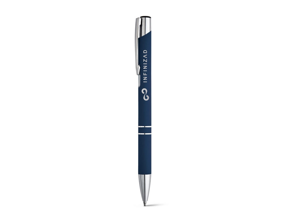 BETA SOFT. Алюминиевая шариковая ручка, Синий. Алюминиевая шариковая ручка с прорезиненным корпусом. Вид нанесения, рекомендуемый поставщиком: гравировка, УФ-печать, круговая гравировка