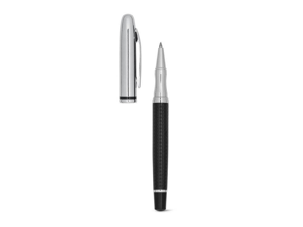DURBAN. Ручка из металла, Черный. Ручка роллер из металла. Поставляется в подарочном футляре с внутренней отделкой. Вид нанесения, рекомендуемый поставщиком: гравировка, трансфер
