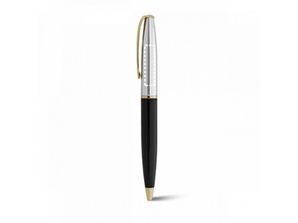 LOUVRE. Шариковая ручка из металла с элементами из золота, Золотой. Металлическая шариковая ручка с элегантными элементами, с 18-каратной позолотой. Шариковая ручка с поворотным механизмом и зажимом. Поставляется в мягком подарочном футляре. ø12 x 139 мм | Футляр: 179 x 56 x 30 мм The additional information presented is indicative and may vary