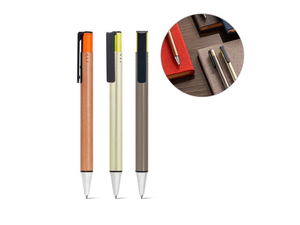 Шариковая ручка из алюминия и ABS с металлическим покрытием. С черным зажимом и цветным корпусом.ø11 x 142 мм