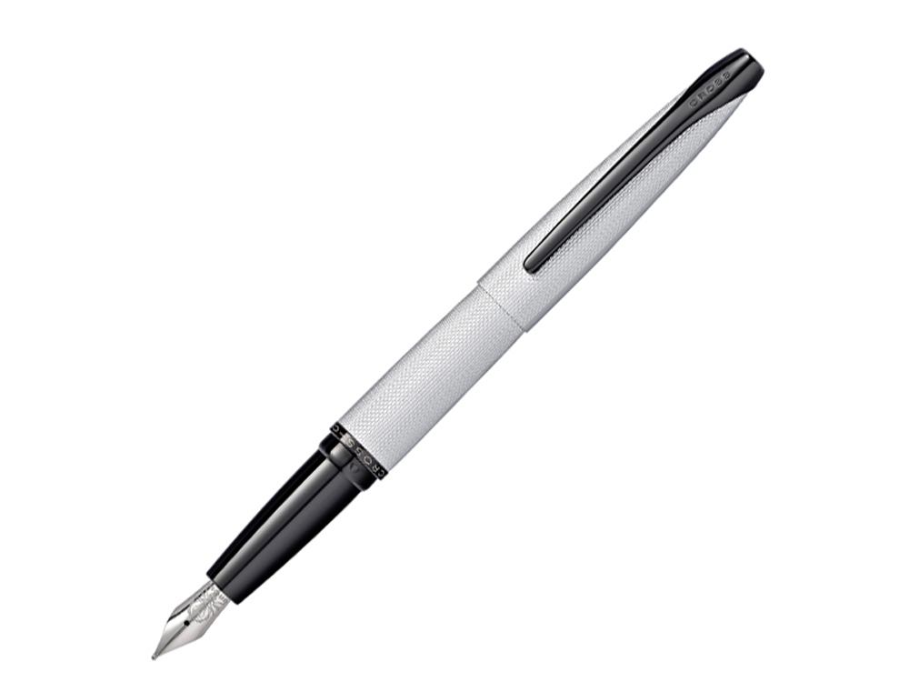 Перьевая ручка Cross ATX Brushed Chrome с гравировкой, полированным покрытием черного цвета и съемным колпачком, перо - нержавеющая сталь.