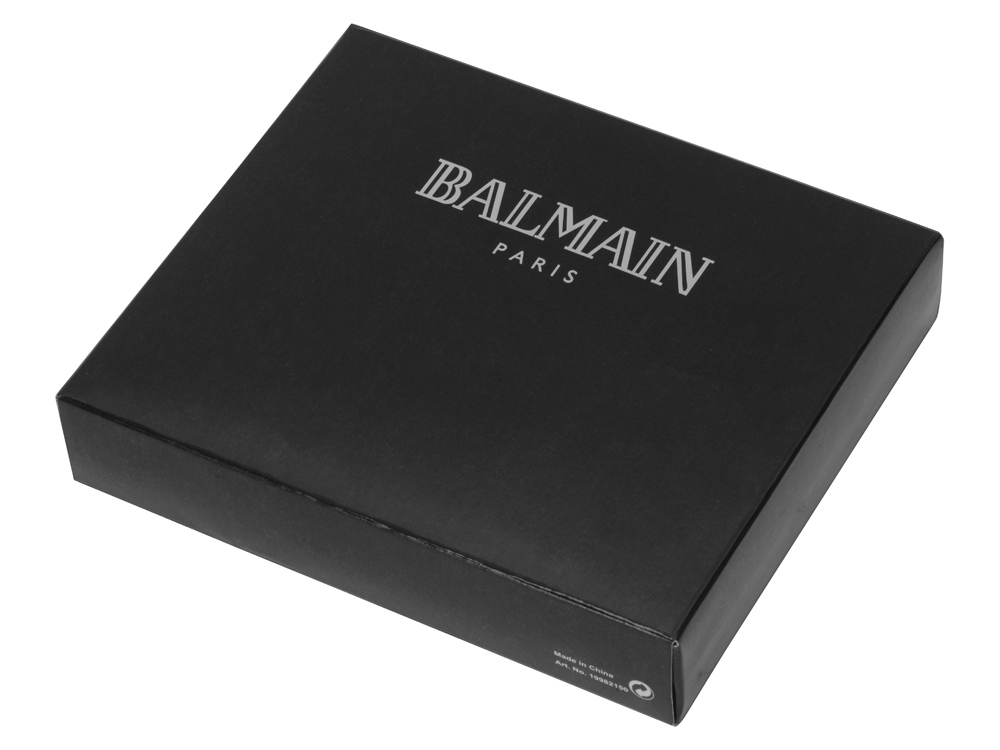 Подарочный набор от Balmain – отличный подарок для делового человека. В наборе дизайнерская шариковая ручка с кожаной отделкой грифа и брелок. На кожаные части возможно нанесение оригинального тиснения. Отличный вариант имиджевой продукции. Тиснение (Блинт) на данный товар осуществляется бесплатно. Оплачивается только настройка оборудования в размере 6200 рублей на весь тираж.