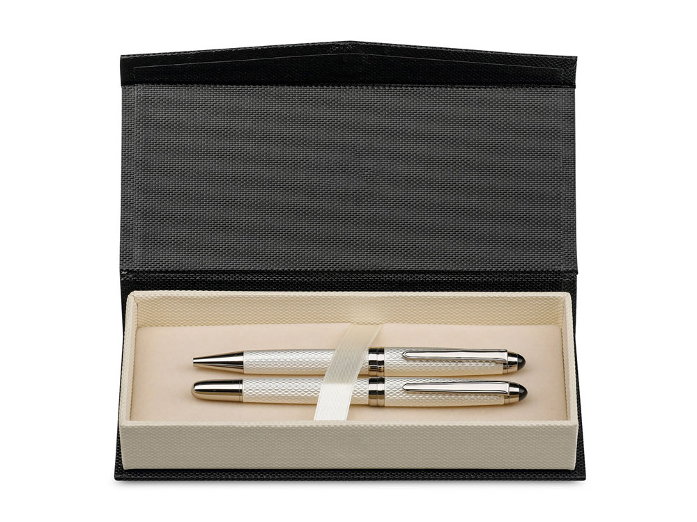 Набор из металлической шариковой ручки и роллера. Поставляется в мягком подарочном футляре. ø12 x 138 мм | Футляр: 192 x 34 x 85 мм. Вид нанесения, рекомендуемый поставщиком: тампопечать.