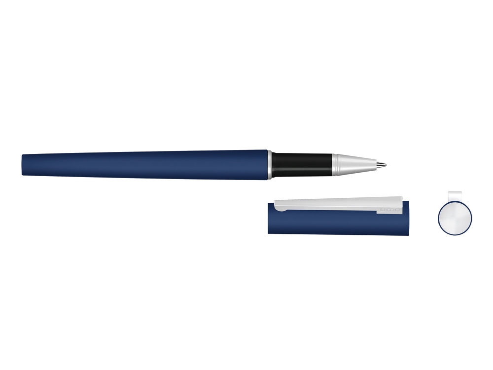 —Ручка металлическая роллер Brush R GUM soft-touch с зеркальной гравировкой, темно-синий