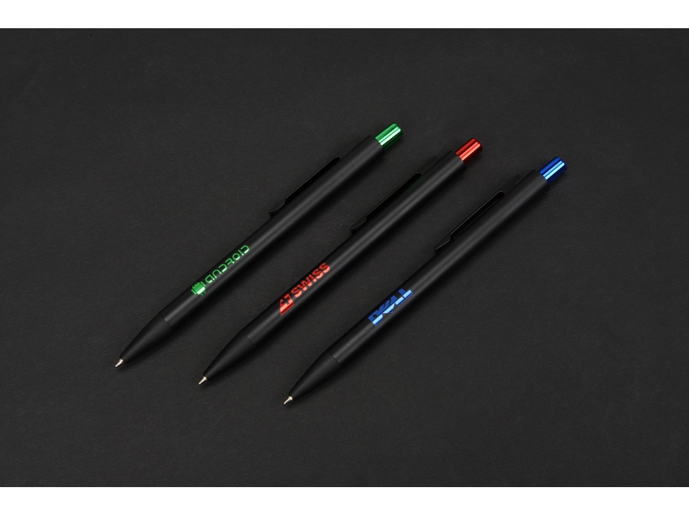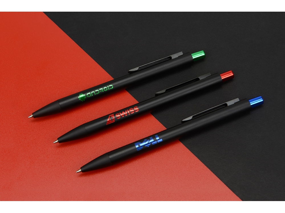Отличная черная ручка будет сиять в руках ваших клиентов. Секрет ручки в цветном зеркальном слое, который вскрывается в цвет кнопки.