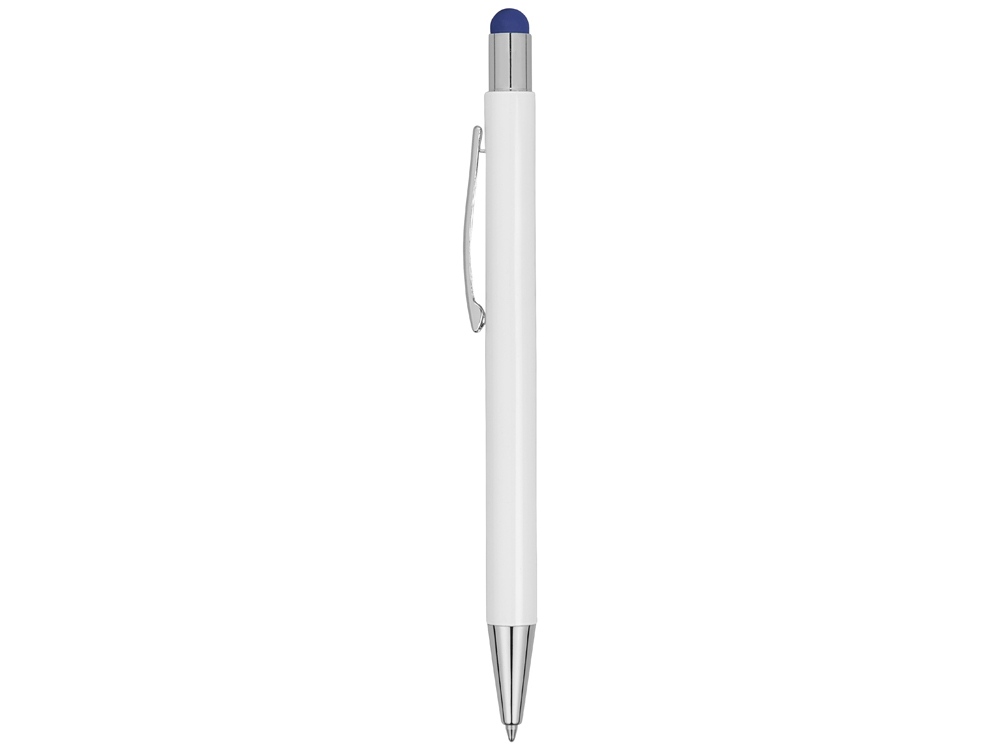 —Ручка металлическая шариковая Flowery со стилусом и цветным зеркальным слоем, белый/синий