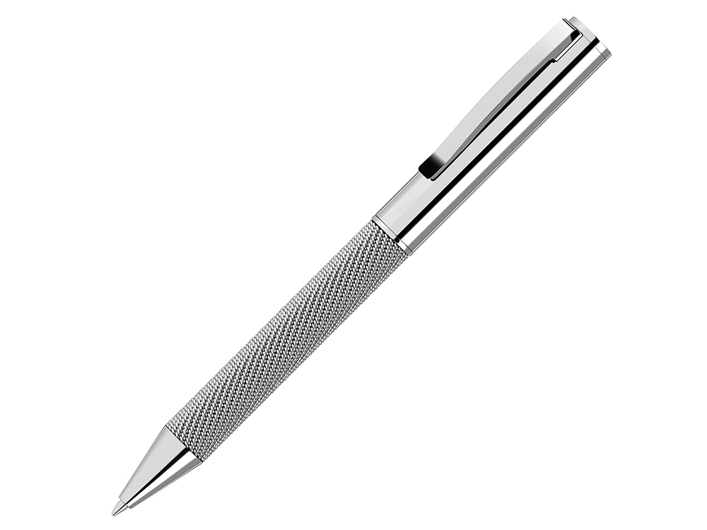 Металлическая поворотная шариковая ручка, покрытая глянцевым лаком, с ремешком из настоящей сетки вокруг корпуса, мягким поворотным механизмом и подпружиненным металлическим зажимом.