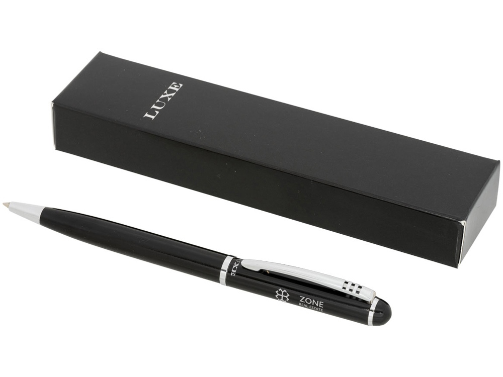 Шариковая ручка. Эксклюзивная поворотная шариковая ручка. Предлагается глянцевый черный, матовый серебряный и матовый синий цвета. Предлагается в подарочной коробке LUXE (16 x 5 x 2,5 см). Металл.