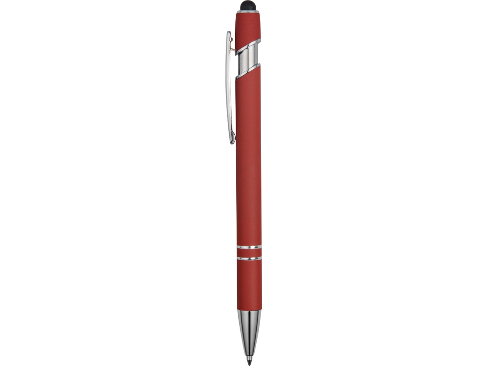 Ручка металлическая soft-touch шариковая со стилусом Sway, красный/серебристый