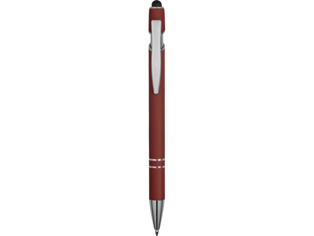 Ручка металлическая soft-touch шариковая со стилусом Sway, темно-красный/серебристый