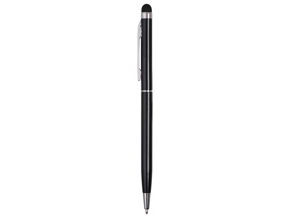 Тонкая металлическая шариковая ручка с поворотным механизмом и стилусом. Функциональный и стильный аксессуар станет отличным подарком.