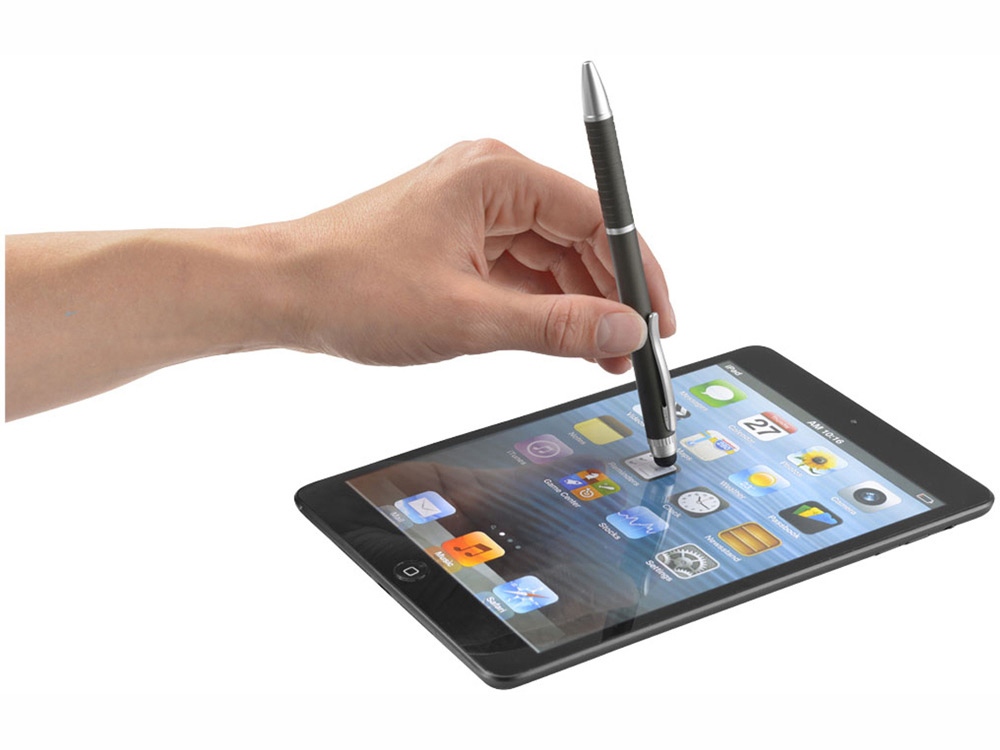 Шариковая ручка-стилус с несколькими стержнями, узорчатым держателем и двусторонним поворотным механизмом для использования синих и черных чернил. Гравировка (оптоволоконный лазер) (Без чернения) на данный товар осуществляется бесплатно. Оплачивается только настройка оборудования в размере 950 рублей на весь тираж.