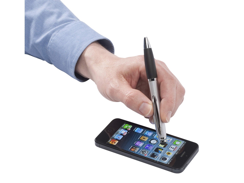 Стильная шариковая ручка в металлическом корпусе также может выполнять роль стилуса для устройств с сенсорными экранами. Замечательно подойдет в качестве подарка коллегам. Гравировка (оптоволоконный лазер) (Без чернения) на данный товар осуществляется бесплатно. Оплачивается только настройка оборудования в размере 950 рублей на весь тираж.
