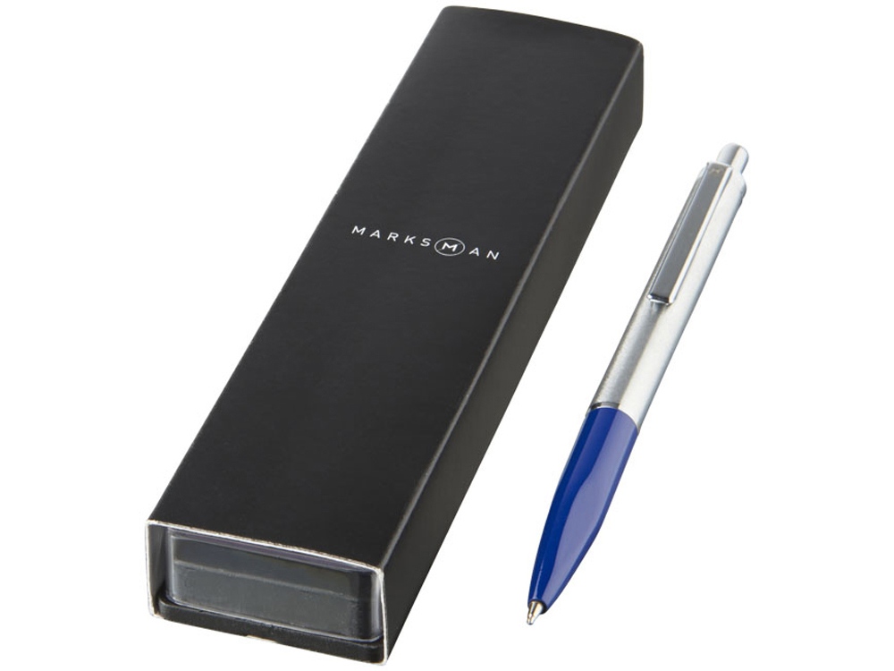 Шариковая ручка Dot  - синие чернила. Шариковая ручка с кнопочным механизмом с комфортным держателем. Упакована в коробку Marksman. Металл и пластик АБС.