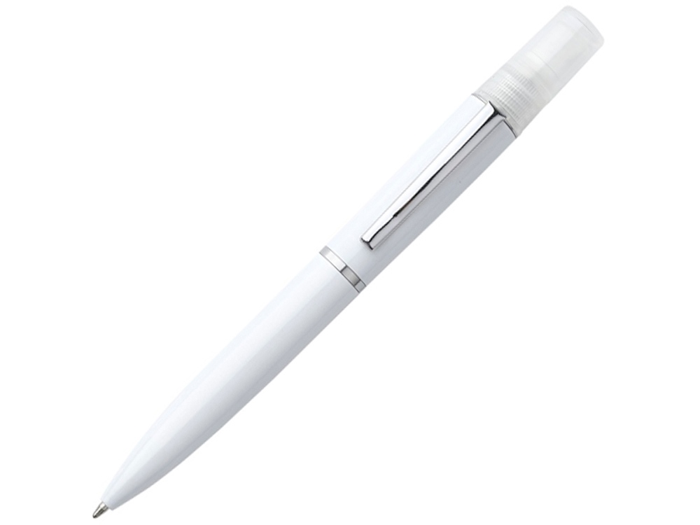 Шариковая ручка с заполняемым распылителем и защитным колпачком. Распылитель можно заполнять спиртом или другой очищающей жидкостью для дезинфекции рук и/или поверхностей. Для заполнения нужно просто открутить насадку распылителя. Емкость распылителя составляет 3 мл. Жидкость в комплекте не поставляется. Гравировка (CO2 лазер) (Без чернения) на данный товар осуществляется бесплатно. Оплачивается только настройка оборудования в размере 950 рублей на весь тираж.