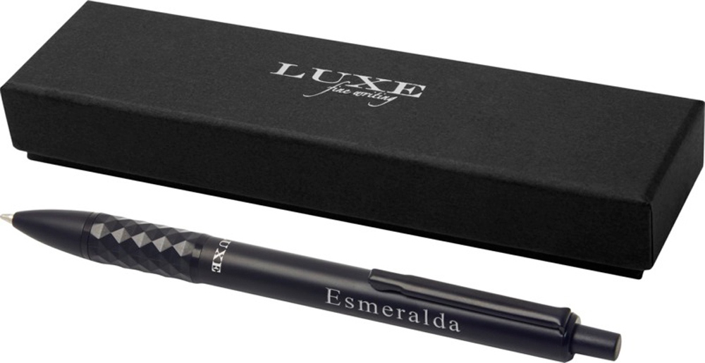 Шариковая ручка с нажимным механизмом и эксклюзивным дизайном сочетает в себе шикарный внешний вид и надежность. Корпус эргономичен для использования. В комплект включен черный стержень премиум качества и подарочная коробка LUXE. Ее можно дополнить перьевой ручкой или ручкой-роллером и использовать в качестве подарочного набора. Алюминий.