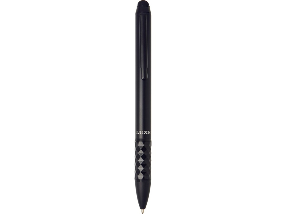 Шариковая ручка со стилусом и эксклюзивным дизайном сочетает в себе шикарный внешний вид и надежность. Корпус эргономичен для использования. Ручка заправлена черными чернилами и упакована в подарочную коробку LUXE. Ее можно дополнить перьевой ручкой или ручкой-роллером и использовать в качестве подарочного набора. Алюминий.
