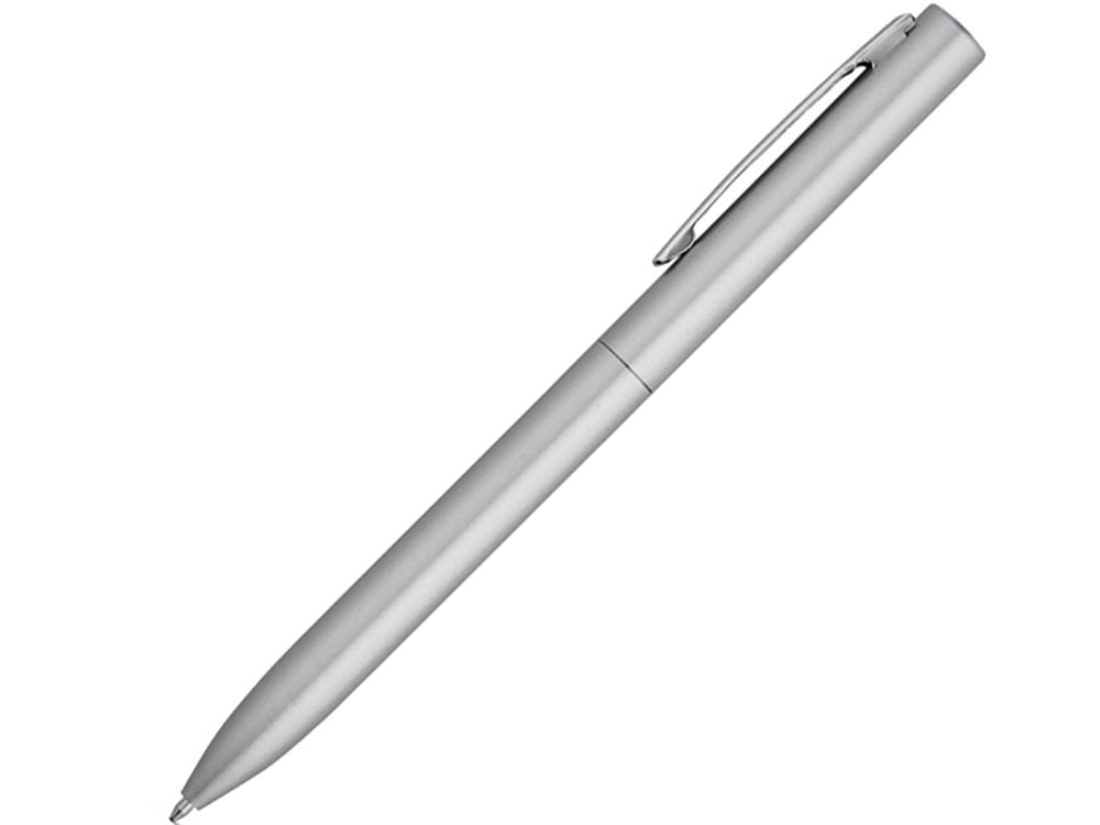 WASS. Алюминиевая шариковая ручка, Сатин серебро. Практичная и классическая алюминиевая шариковая ручка с поворотным механизмом, хромированным металлическим клипом и лакированным корпусом в индивидуальной упаковке. Металлический стержень type-Crossс синими чернилами Dokumental®. Вид нанесения, рекомендуемый поставщиком: гравировка, тампопечать, круговая гравировка