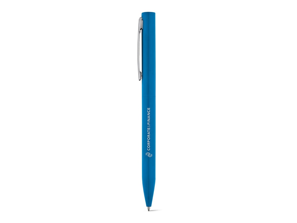 WASS. Алюминиевая шариковая ручка, Синий. Практичная и классическая алюминиевая шариковая ручка с поворотным механизмом, хромированным металлическим клипом и лакированным корпусом в индивидуальной упаковке. Металлический стержень type-Crossс синими чернилами Dokumental®. Вид нанесения, рекомендуемый поставщиком: гравировка, тампопечать, круговая гравировка