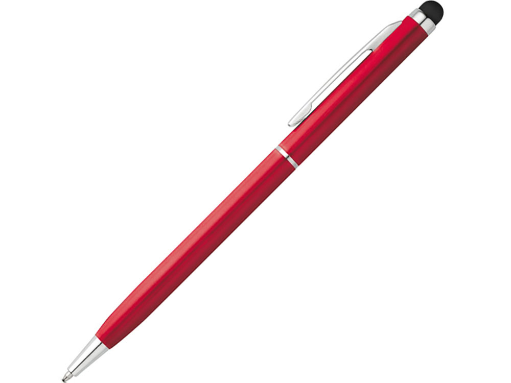 ZOE. Алюминиевая шариковая ручка, Красный. Алюминиевая шариковая ручка со стилусом. Вид нанесения, рекомендуемый поставщиком: гравировка, тампопечать, круговая трафаретная печать