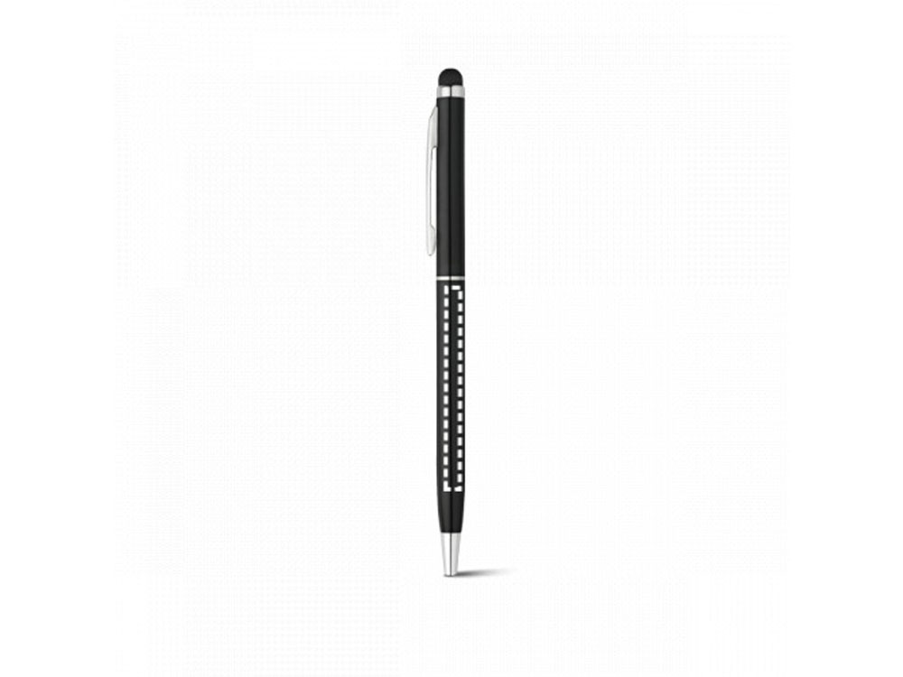 ZOE. Алюминиевая шариковая ручка, Металлик. Алюминиевая шариковая ручка со стилусом. Вид нанесения, рекомендуемый поставщиком: гравировка, тампопечать, круговая трафаретная печать