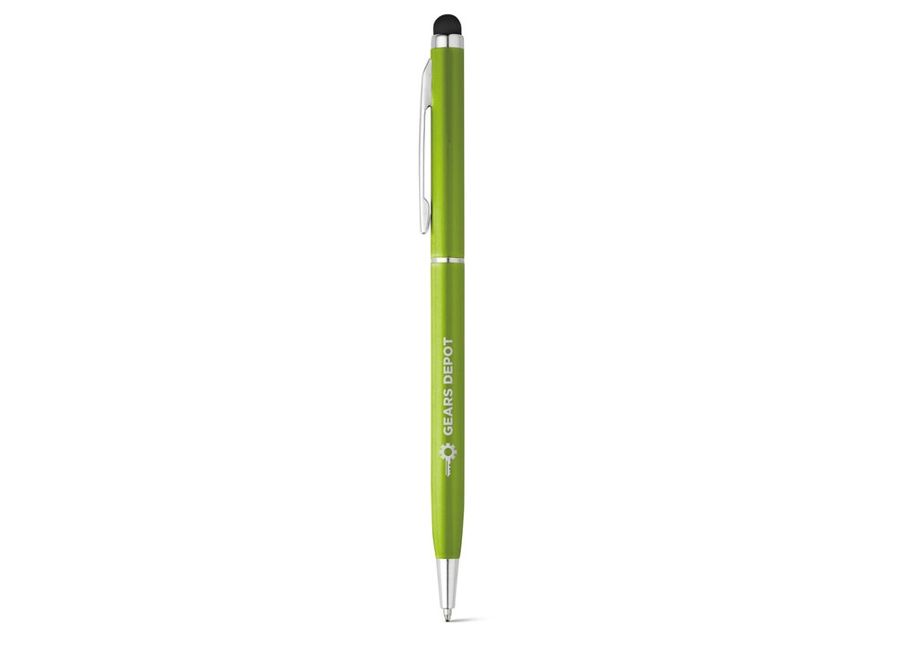 ZOE. Алюминиевая шариковая ручка, Светло-зеленый. Алюминиевая шариковая ручка со стилусом. Вид нанесения, рекомендуемый поставщиком: гравировка, тампопечать, круговая трафаретная печать