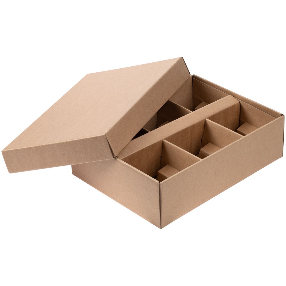 Самосборная коробка из микрогофрокартона плотностью 400 г/м² с ложементом для 6 кружек.