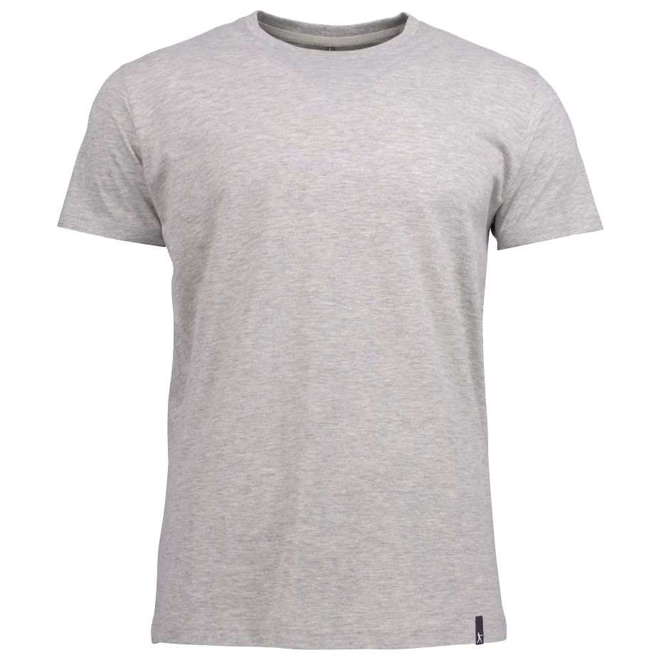 Мужская футболка с круглым вырезом. Двухслойная резинка предохраняет воротник от деформации после стирки.