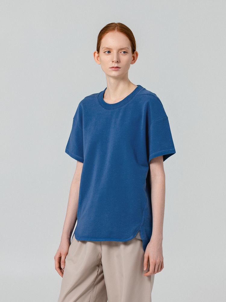 Футболка унисекс свободного кроя со спущенным плечом и смещенными плечевыми и боковыми швами.