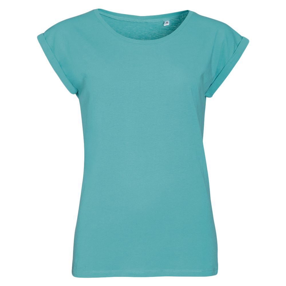 Кроеная футболка с круглым воротом и бесшовной проймой.